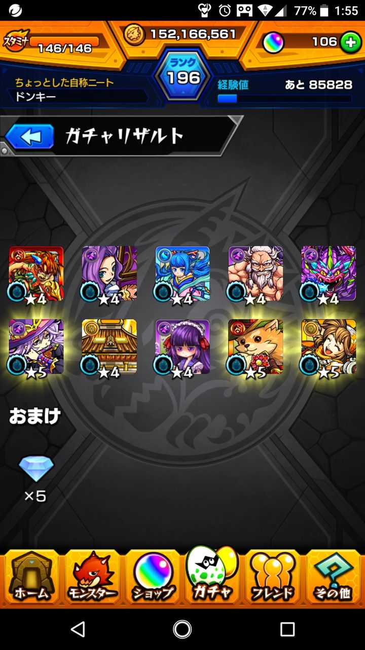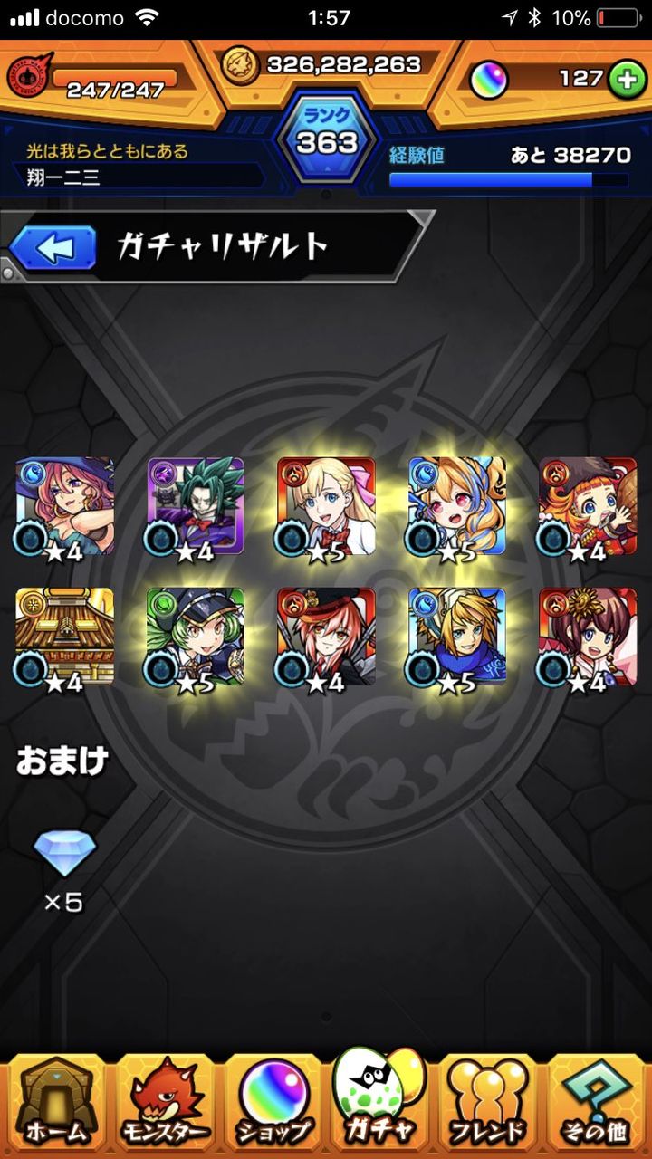 @0623_Noa_19辛いことはほっとこう!気分転換!モンストの超獣神祭はクソしか出らんかったけど、星5確定で良いやつ出た!!!しかも、もう一つの携帯も10連で★5 1つ出したし!運使い切ってしまったかな?w